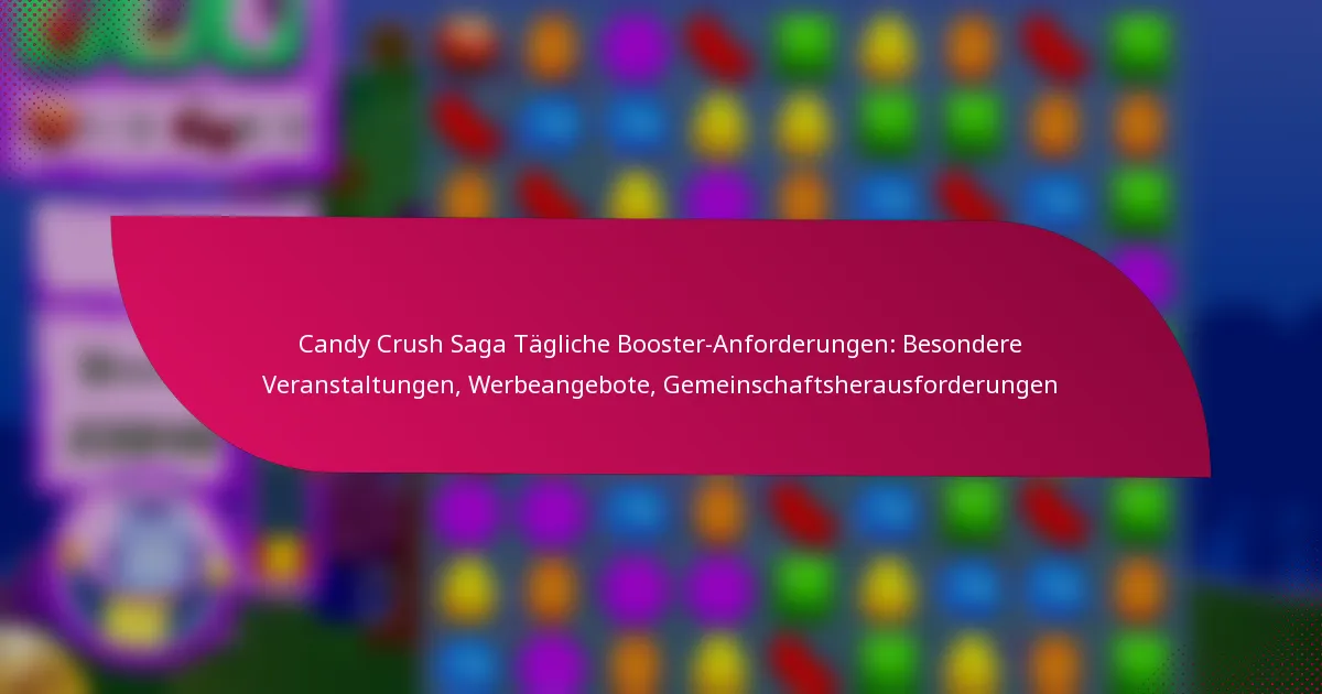 Die täglichen Booster-Ansprüche in Candy Crush Saga sind mit verschiedenen speziellen Events verbunden, die das Engagement der Spieler erhöhen und einzigartige Belohnungen bieten. Diese Events umfassen typischerweise zeitlich begrenzte Herausforderungen, Werbeaktionen und gemeinschaftlich ausgerichtete Aktivitäten, die zur Teilnahme und zur Entwicklung von Fähigkeiten anregen.
